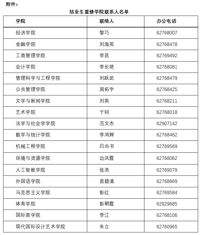附件:结业生重修学院联系人名单