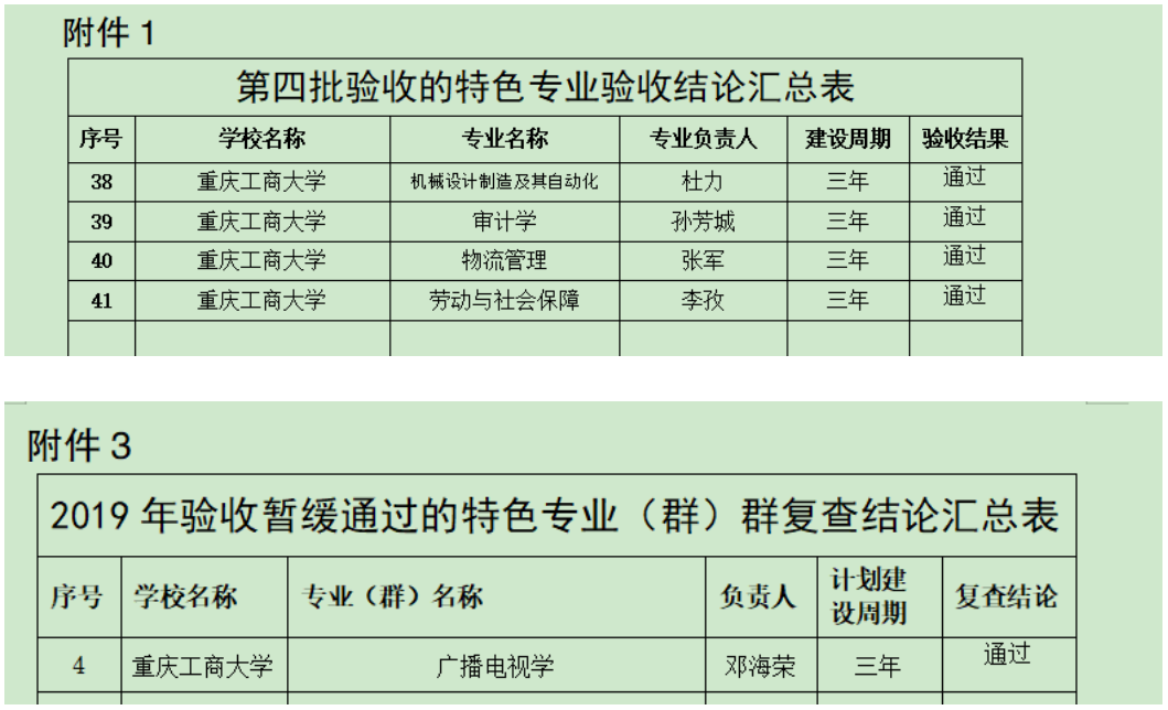 近日,重庆市教育委员会公布了《关于“三特行动计划”第四批特色专业和第二批特色学科专业群验收及复查情况的通报》(渝教高发 [2020] 10号),我校第四批4个特色专业审计学、物流管理、劳动与社会保障、机械设计制造及其自动化,以及2019年验收暂缓通过的广播电视学专业全部顺利通过验收。