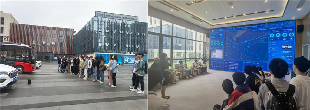 在招商车研的安排下,我院20级智能网联汽车班师生一行于6月16日下午驱车来到了西部自动驾驶开放基地进行参观,并在讲解员的推荐下体验了由百度开发的萝卜快跑自动驾驶网约车。