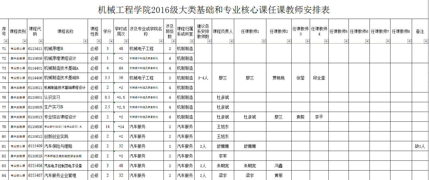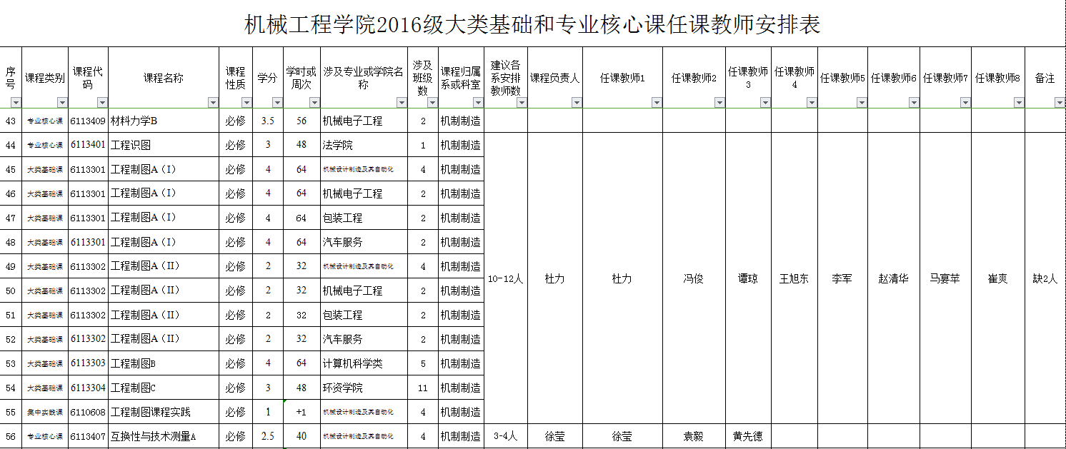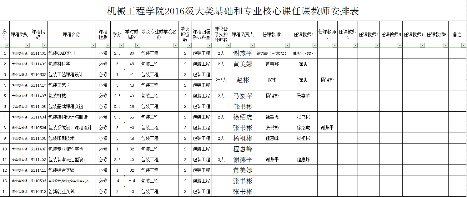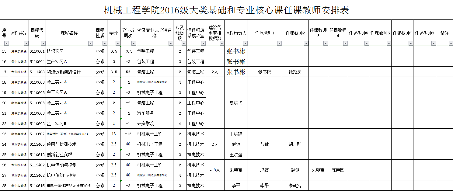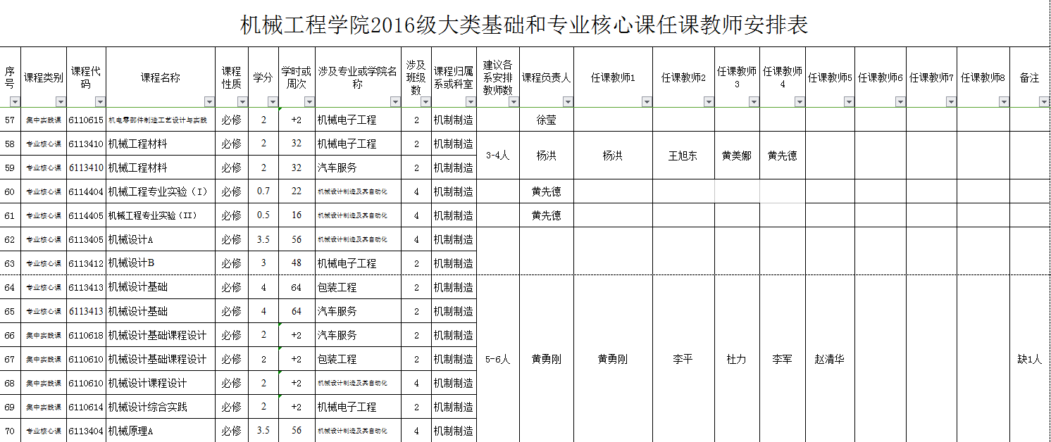 1、鉴于2016级人才培养方案有了新的较大的调整,为实施好相关人才培养计划,通过学院教学指导委员会讨论,并经学院院务会研究,对2016级人才培养方案涉及的大类基础课程及专业核心课程等的教学任务进行了重新安排(具体方案见yl23455永利集团关于教学大纲等修订(编写)的实施方案,机院【2016】第16号)。具体教学任务安排表见附件,各系原则上应按此表落实具体教学任务,请各位教师提前做好有关教学准备。