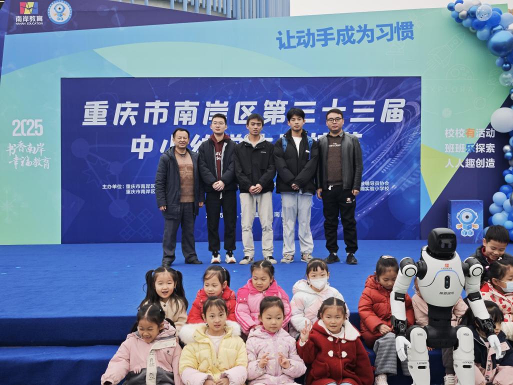 2025 年 12 月 16 日,南岸区第 33 届中小幼学生科技节在广阳湾珊瑚实验小学隆重启幕。同期,由市教委指导,市教科院、南岸区教委主办的 “重庆市中小学科学教育大会、南岸区第二届科学教育学术年会” 同步举行。重庆工商大学科研处副处长杜彦斌教授、机器人与激光应用中心科普基地主任王洪建教授与副主任田胜利副教授带队参会,yl23455永利集团机械师学生团队参加现场活动。