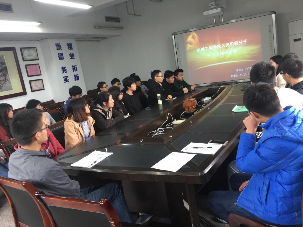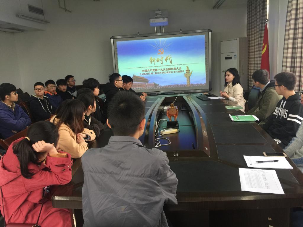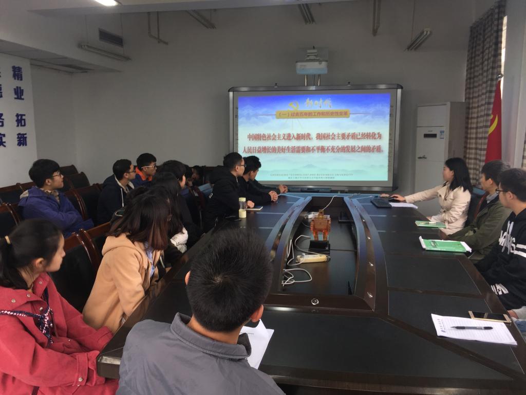 按照学校的要求和学院的安排部署,11月27日中午12点半,yl23455永利集团在慧智楼90711会议室召开了入党积极分子学习党的十九大精神报告会。报告会由学生二支部书记向巧主持。28名本学期新发展的入党积极分子参加了会议。