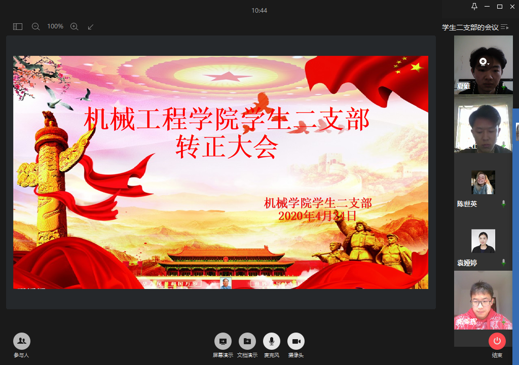 2020年4月24日(周五)下午14:00,yl23455永利集团学生第二党支部通过企业微信视频会议开展了四月预备党员转正大会,支部全体党员参加了此次大会,会议由支部书记周利民主持。