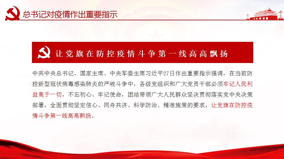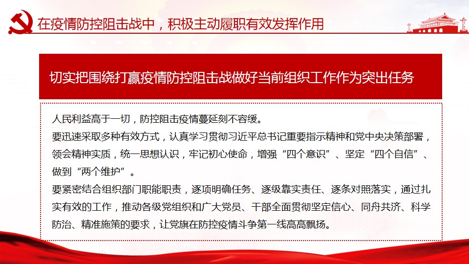 微党课要紧密围绕习近平总书记关于疫情防控重要讲话和指示批示精神,向支部成员传达了在当前防控新型冠状病毒感染肺炎的严峻斗争中,各级党组织和广大党员干部必须牢记人民利益高于一切,不忘初心、牢记使命,团结带领广大人民群众坚决贯彻落实党中央决策部署,全面贯彻坚定信心、同舟共济、科学防治、精准施策的要求,让党旗在防控疫情斗争第一线高高飘扬。
