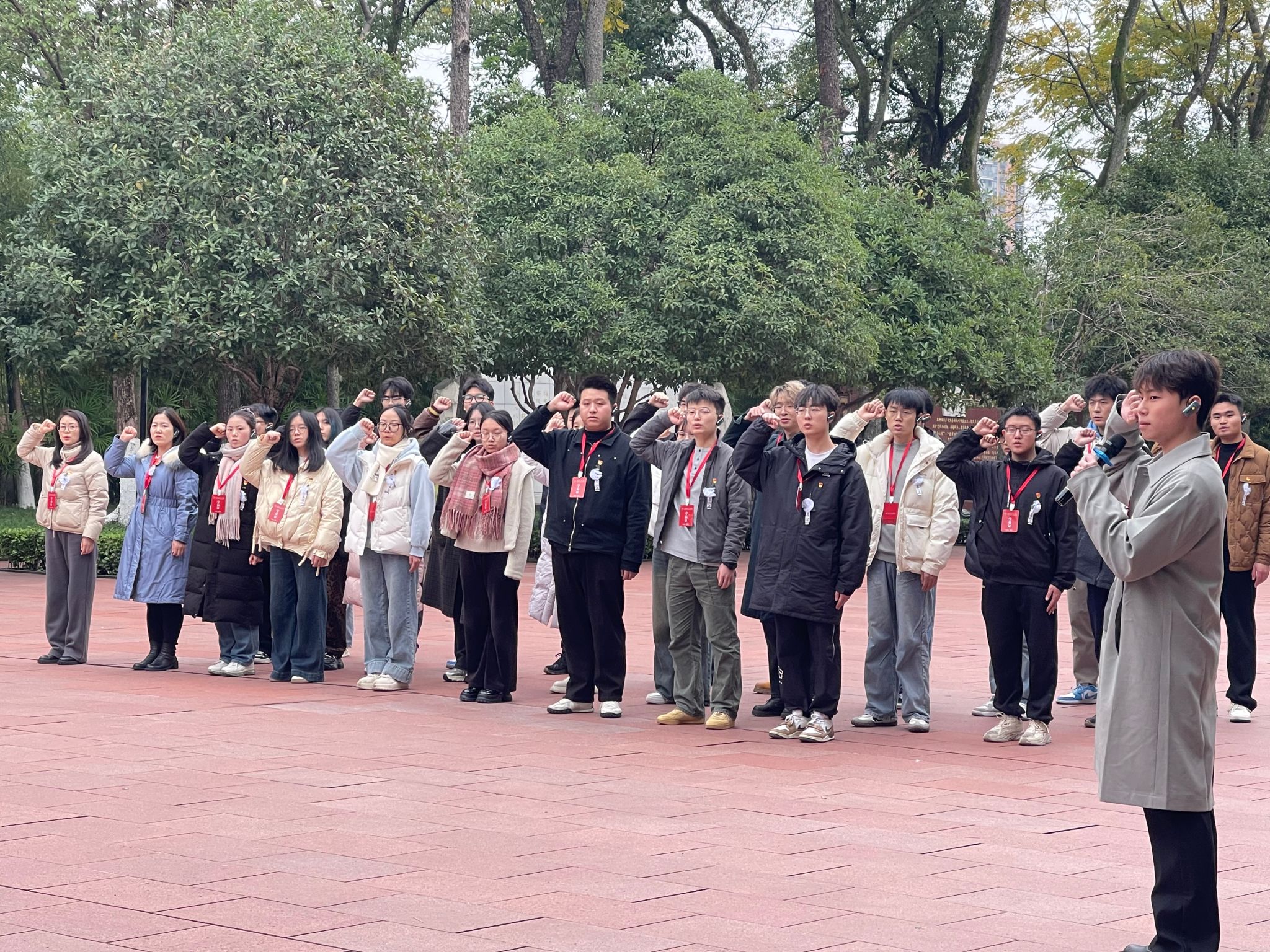 接着,老师带领学生党员们前往歌乐山烈士陵园,在“11·27”烈士公墓前,学生党员们怀着无比崇敬的心情,进行了庄重的烈士祭拜仪式。全体党员列队肃立,向革命烈士敬献花篮,为先烈默哀,向忠魂致敬。面对鲜红的党旗,党员们高举右拳,重温入党誓词,表达为党的事业毕生奋斗的决心。