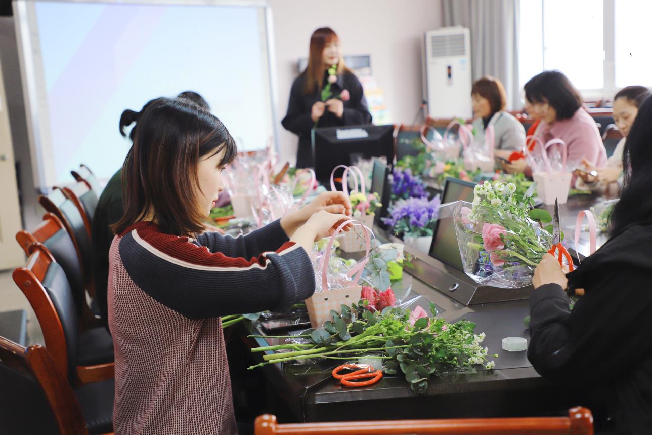 3.5日中午12点30分,为庆祝即将来临的三八国际妇女节,yl23455永利集团工会在学院会议室开展主题花艺培训活动。活动邀请重庆伊洛梵环境艺术设计有限公司的花艺培训老师,为与会人员介绍常见花材、传授花材的整理与保养知识,并详细指导了与会人员完成插花活动。此次活动让我院教职工掌握了基础插花知识,享受了插花艺术的乐趣,让教职工之间加强了沟通、增进了友谊,有效提升了教职工的艺术修养与工作幸福感。