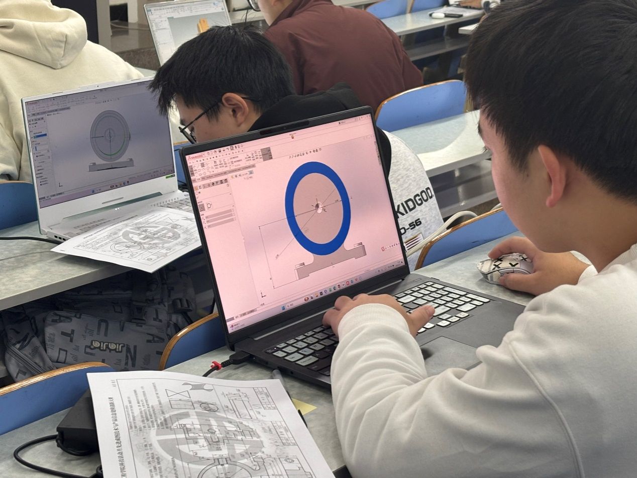 比赛过程中,选手们沉着应对,专注投入。他们凭借扎实的基础知识和娴熟的操作技巧,在规定时间内完成了高质量的图纸绘制与模型构建。赛场上,键盘的敲击声与绘图笔的划动声此起彼伏,展现了机械学子对专业知识的热爱与追求。