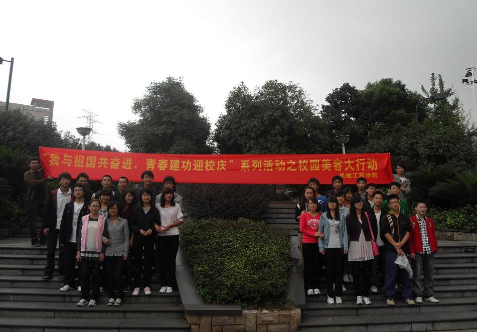 10月3日下午,yl23455永利集团团委学生会携手义工志愿者协会、科技协会,举行了“我与祖国共奋进,青春建功迎校庆”系列活动之——校园美容大行动。在这举国同庆的假期,机械学子为即将到来的六十周年校庆献出了自己的一份薄礼,在全校范围内给“母亲”做了一次彻底的美容,让“母亲”容光焕发,用更加娇丽的面容迎接六十华诞。