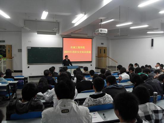 2011年11月8日下午,yl23455永利集团在90226教室举办了“11.9”消防及安全知识讲座,保卫处钱忠坤副处长应邀为机械学院200余名学生做了关于消防、安全等方面的宣传讲解。学院党总支杨明伦书记,刘洋副书记,分团委书记王微老师参加了此次活动。