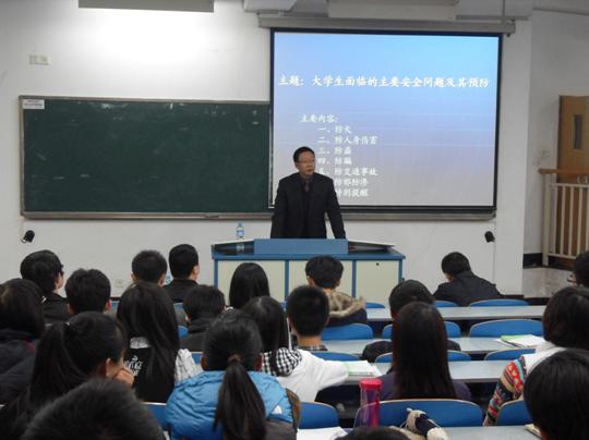 讲座伊始,杨明伦书记首先了强调安全知识的重要性,希望同学们能提高意识,加强安全方面的学习,杜绝安全隐患。随后,钱处长从消防安全、人身安全、防盗防骗、交通安全、反邪教等方面给同学进行了宣传和教育,面对安全隐患如何有效的防止,面对安全事故如何有效的应对。从一张张真实的图片,一个个血的教训里,同学们再一次加强了对安全问题重要性的认识和提高。