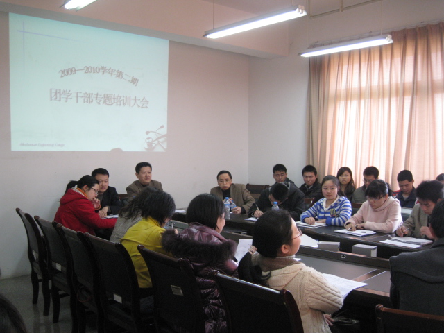 为进一步做好新学期团学工作,提升团学干部个人素质。2010年3月11日中午12:30,yl23455永利集团在学院会议室召开了新学期团学干部专题培训大会。学院党总支罗卫书记、杜力院长、党总支刘洋副书记、学团办尹建平主任、团总支刘静书记、07、08、09级辅导员及学院全体团学干部出席了本次大会。会议就如何正确看待团学干部的角色,如何提升团学干部的素质和能力,如何建立一个高效的团学干部队伍等问题进行了探讨,同时对学院本学期团学工作的发展和改革进行了交流和探讨。