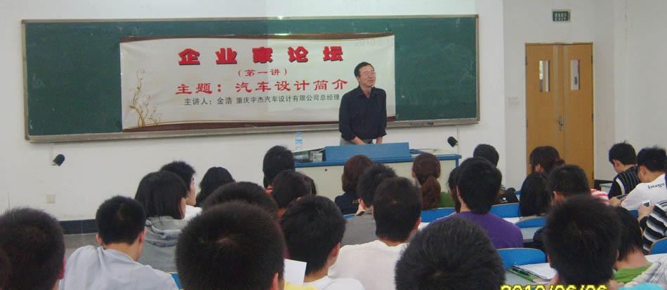 6月10日下午,yl23455永利集团企业家论坛首场讲座在慧智楼90326教室举行。重庆宇杰汽车设计有限公司总经理金浩应邀做了以“汽车设计简介”为主题的讲座。学院07级机电、机制、模具、汽车专业学生及院党政领导参加了本次讲座。