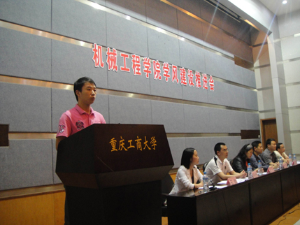 会议上,首先杜力院长宣读了学院文件《关于授予张成伟同学优秀学生标兵称号的决定》,总支书记罗卫副教授为优秀学生标兵张成伟颁发了荣誉证书和奖品。与此同时,会上也通报了2009-2010学年我院学子参与重庆市及国家级学术科技竞赛获得名次的同学名单,并对获奖学生代表进行了表彰和奖励。刘洋副书记宣读了学院文件《关于向优秀学生标兵张成伟同学学习的通知》。