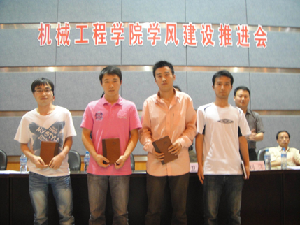 大会上,优秀学生标兵张成伟同学向学弟学妹们介绍了大学四年的学习经验,和参加学术科技活动的经历和收获,号召学弟学妹们在大学四年里要树立远大理想,合理规划设计大学学习和生活,努力钻研专业知识,积极参加学术科技活动,不断提升自己的综合素质。也介绍了他和他的团队四位同学由于出色的专业知识和实践能力,在长安集团、建设集团、建设雅马哈、富士康等多家知名企业面试招聘过程中取得成功。最后四位同学被全国500强企业玉柴集团的求贤若渴的诚意、并提供高薪待遇和安家费以及较好的工作和研发前景所打动。