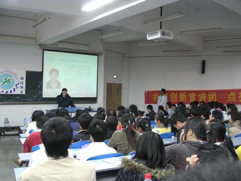 为响应学校“抓党建、促三风、建三高”的号召,机械学院再度掀起“三风”建设的热潮。2008年11月20日晚上7:00,机械学院在主校区90326教室隆重举行“科技创新优秀学子宣讲”活动。学院党总支喻永红书记、张明贤院长、陈善国副书记、邹昌平副院长出席,团学办主任尹建平、团总支书记刘静及各年级辅导员参加了本次活动,重庆日报和重庆时报记者对本次活动进行了现场采访。