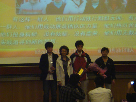 4月7日晚7点,在主校区7100教室,我校成功举办了“2008感动校园年度人物”颁奖典礼,我院科技创新团队被评为“2008感动校园年度人物”。