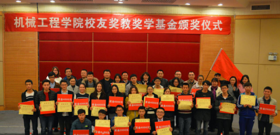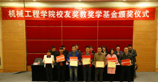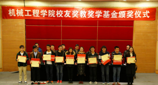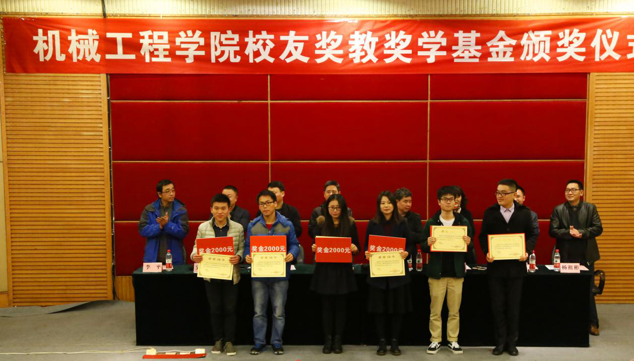 颁奖仪式上93届机制专业毕业校友、广东校友分会副会长杨焕宇宣读奖教基金获奖名单;学生处处长罗勇、教务处副处长胥江河分别宣读了学生状元奖、优秀学生干部获奖名单并为学生颁奖。今年是yl23455永利集团首次进行奖教教学金评选,对获得奖教金的7位老师给予每人8000元的奖励,对获得各班级学习状元奖的29位同学给予每人4000元的奖励,对获得优秀学生干部奖的6位同学给予每人2000元的奖励。