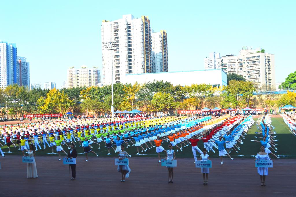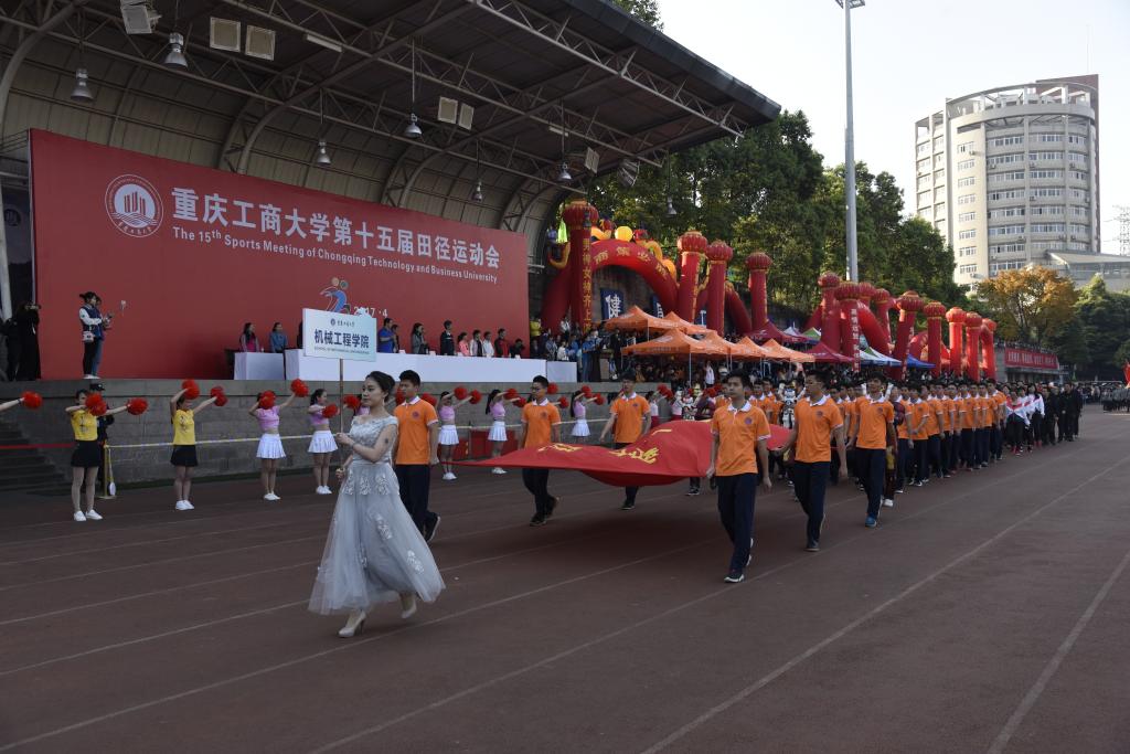 4月13日、14日,重庆工商大学在南区足球场举办第十五届田径运动会。校党委书记李春茹教授、校长孙芳城教授等出席了开幕式。