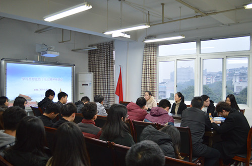 分团委书记邢月军在座谈会上传达了习近平总书记在中国共产党第十九次全国代表大会的重要思想。党的十九大是中国共产党历史上和中华民族历史上一次具有里程碑意义的重要会议。习近平总书记在报告中指出,中国特色社会主义进入了新时代。身处这样一个伟大时代的青年大学生是幸运的。各团支书要将十九大精神传达给支部的每位学生,将十九大精神融入贯彻到学习生活中去,承担起历史与时代所赋予当代大学生的责任和使命。