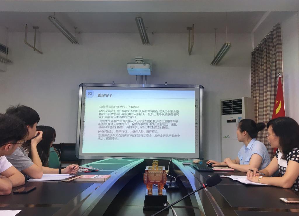 首先,邢老师讲解了暑期“三下乡”社会实践活动的安全要求和注意事项,同时讲解了容易发生的突发状况的解决方法及预防措施,重点强调了社会实践安全的重要性,要确保人身和财产安全,队员们应互帮互助并及时向带队老师反馈团队安全情况。最后,张书记总结发言,再次强调安全注意事项,社会实践团成员应一切行动听从带队老师的安排,不允许单独行动,也祝愿同学们安全出行,满载而归。
