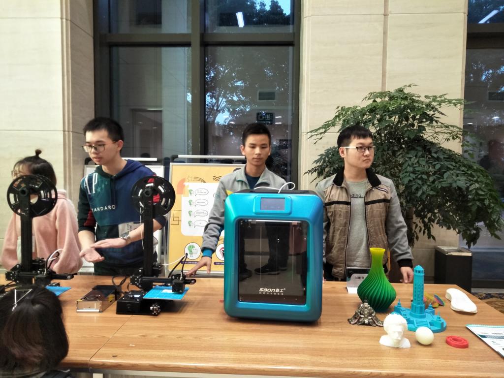 大会开始前,3台3D打印的机器以及往届优秀作品展放在图书馆大厅,吸引了很多同学前来围观。