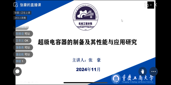 讲座注重理论与实践结合,强化创新思维培养。彭斯洋老师以“并联机器人构型创新设计及工程应用”为例,展示机构创新的实现路径;张豪老师通过“超级电容器的制备及其性能与应用研究”,呈现新能源技术的广阔前景;黄美娜老师探讨“绿色未来携手同行推动制造业低碳绿色转型之路”,引导学生思考工程技术的社会责任;王强老师解析“低空经济下重载无人机关键技术及应用”,展望新兴产业发展机遇。