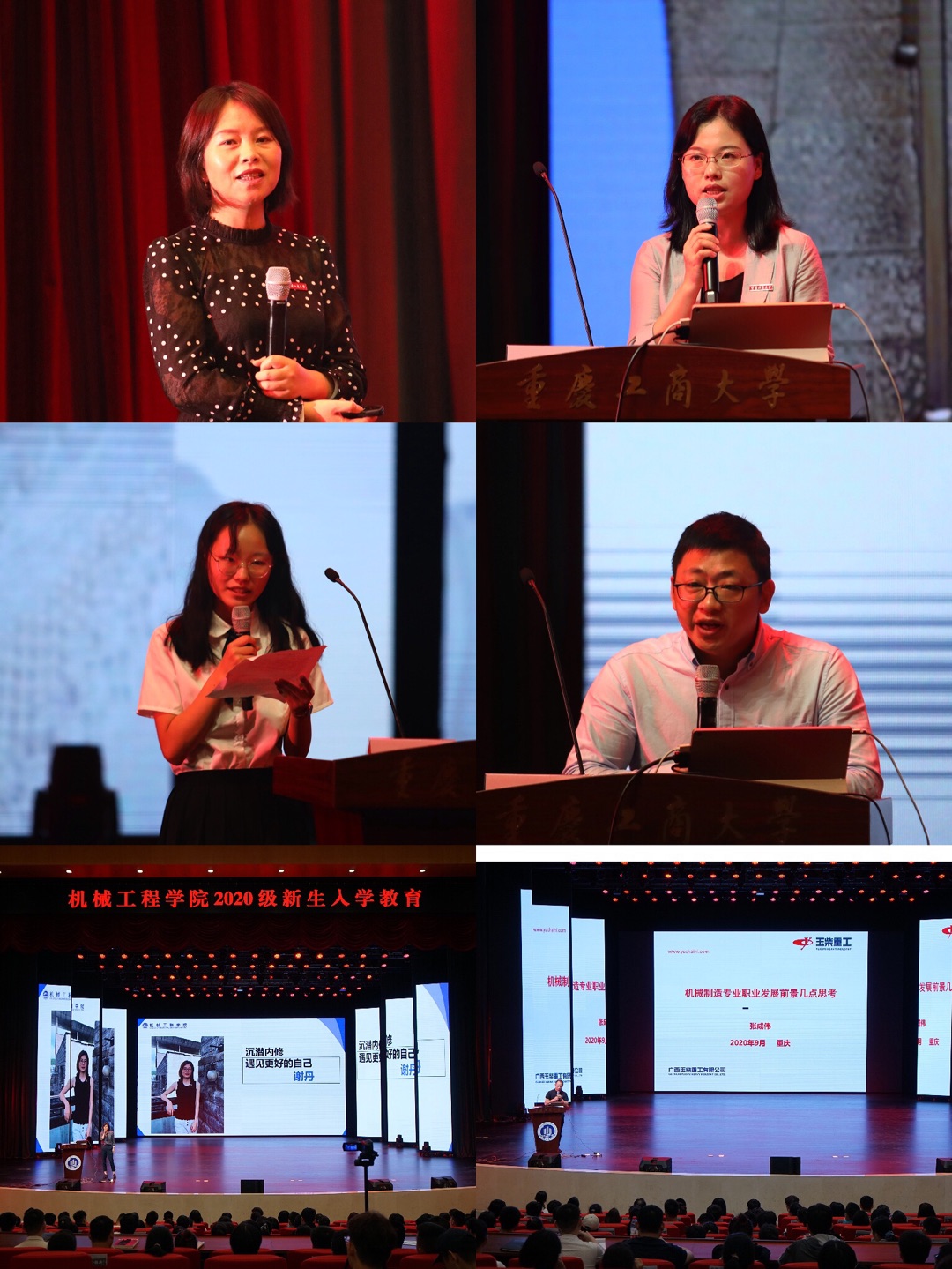 24日下午,我院在主校区千人大礼堂开展了新生入学教育主会场活动。学院程亚副书记向新生致欢迎词,她表达了对新生们的祝福和期望,希望同学们在大学有精彩的生活,鼓励新生努力学习专业知识,为自己的大学生活添色增彩。20级机制四班赵玉菡同学作为新生代表发言,表达了对学校和学院的热爱,希望尽快适应大学生活,掌握好自己学习和生活的节奏,同时提升认知,敢于拼搏与挑战。机制系谢俊博士作为教师代表发言,他以一名学长的身份寄语新生们,希望他们放眼未来、保持激情、感恩世界。在新生入学教育活动的第二阶段,杜力院长做了学院基本情况介绍的主题讲座,她从学院发展沿革谈起,从学生活动、学科竞赛、职业发展、校友情况、就业情况、学院科研教学资源等方面让新生们多角度的认识学院。本次学院新生入学教育还邀请了曾经的“感动校园人物”张成伟校友和考研达人谢丹校友回校做专题讲座。张成伟校友从介绍自己在校期间参与科研创新的经历讲起,围绕机械制造专业当今的发展前景给新生们做了一堂职业规划讲座,他从亲生经历出发告诫新生们要保持激情、保持耐心,刻苦地去学习专业知识,掌握扎实的专业本领。谢丹校友通过自身经历来建议新生们在大学期间注重自身内在品德的培养,沉潜内修,养成良好习惯,做到自律、自爱、自强,认真地去对待每一件事情,以量变成就质变,从而遇见更好地自己。