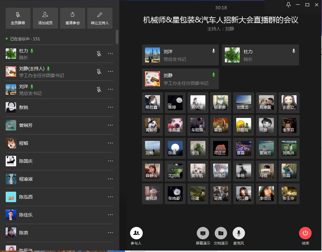 2020年4月3日,yl23455永利集团第五届“团队伴我成长”招募活动在线上召开,学院刘洋书记、杜力院长,学工办主任刘静老师、工程训练中心刘雪龙老师和学院2019级近200学生参加了此次招募活动,新生参与人数占2019级学生的近60%。招募活动由学工办主任刘静老师主持。