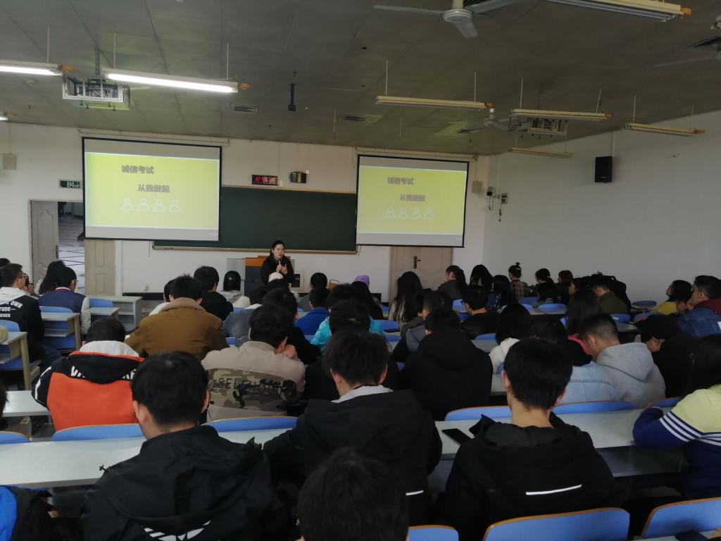 2019年12月上旬,yl23455永利集团2016-2019年级开展了诚信考试主题班会教育活动,各班辅导员通过主题班会形式组织全体学生在考试周开始前学习相关的文件规定。学习内容包括《国家教育考试违规处理办法》、《重庆工商大学本科学生违纪处分管理办法》、《重庆工商大学学生考试违纪及作弊处罚规定》及《中华人民共和国刑法修正案(九)》(2015年11月1日,刑法第二百八十四条之一规定)等相关规定。在完成主题学习之后,各班学生签订了《学生诚信考试承诺书》,承诺考试遵循公平公正原则,端正考试态度,严守考纪,诚信应考,更不在校内外替考,在不良念头面前,严于自律。