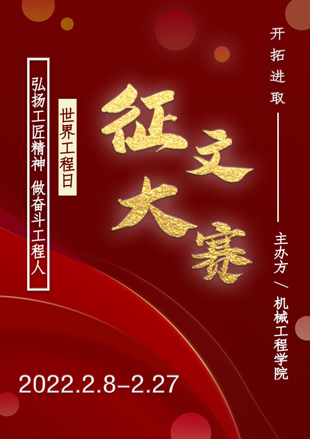 联合国教科文组织第40届全体大会上通过决议,将每年3月4日设立为“促进可持续发展世界工程日”简称“世界工程日”。2020年3月4日是世界首个工程日,在第3个“世界工程日”到来之际,为进一步弘扬新时代工匠精神,培养我院学生执着专注、作风严谨、精益求精、敬业守信、推陈出新的道德情操和行为习惯,加强学院文化建设,yl23455永利集团于2022年2月8日至2月27日举办了为期20天“弘扬工匠精神,做奋斗工程人”世界工程日主题线上征文比赛活动,为全院同学提供了一个弘扬工匠精神的平台。