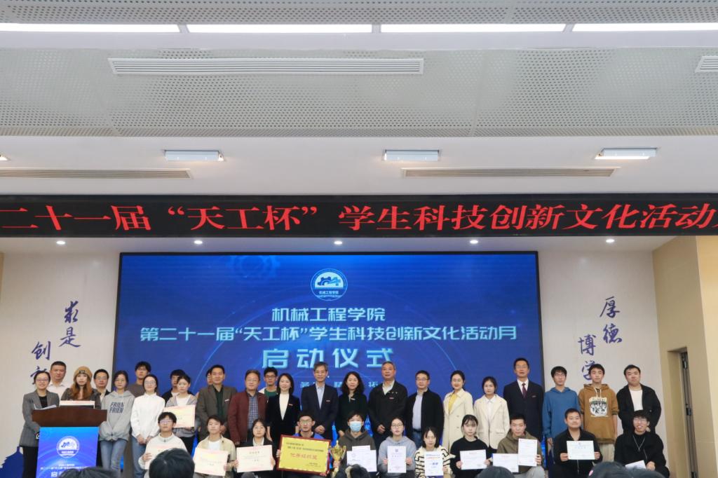 学校校长孙芳城教授讲话,他指出,学生科技创新文化活动月搭建了一个很好的竞技和教育的平台,培育出了一大批国赛、省赛获奖作品和选手,以及学生科技团队,在提升同学们创新意识和工程素养上,起到了很好的促进作用。他讲到,在科技发展的大环境下,机械工程学科和技术的重要性、机械工程人才培养的重要性以及实践和创新的重要性,都是学校着重关注的地方。在如今人工智能、数字孪生、智能制造等技术的支持下,机械工程的内涵在不断的拓展和丰富。他相信同学们在面向学科前沿、新的工程领域和重要工程需求时,定会潜心学习和研究,苦练本领,在机械工程科学和技术的发展道路上取得新的突破。