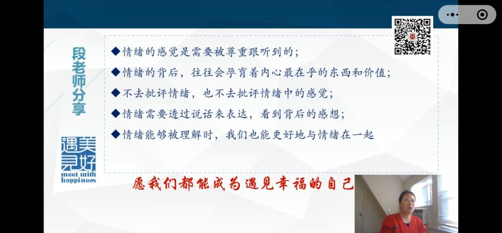 段教授介绍了情绪管理的三个方法。当有不良情绪出现,我们应该问自己三个问题:Q1 :What我现在有什么情绪?02:Why我为什么会有这种感觉(情绪) ?03:How如何有效处理情绪?梦是情绪的出口,情绪背后才是问题。要用大脑去思考,不要让情绪控制自己。