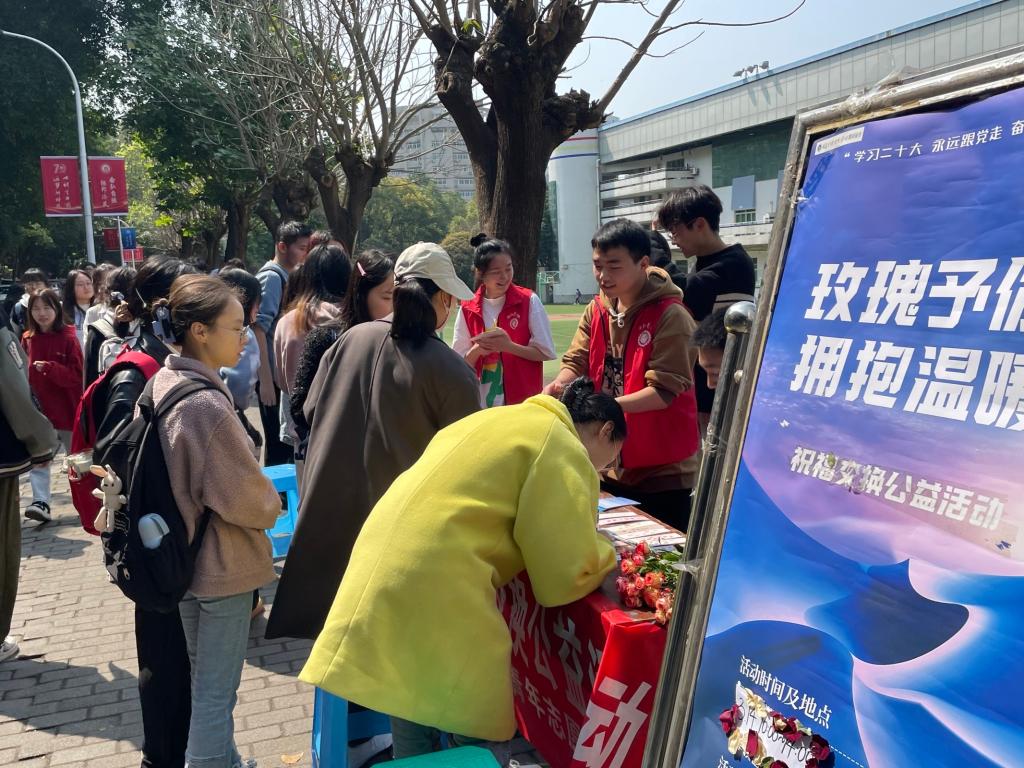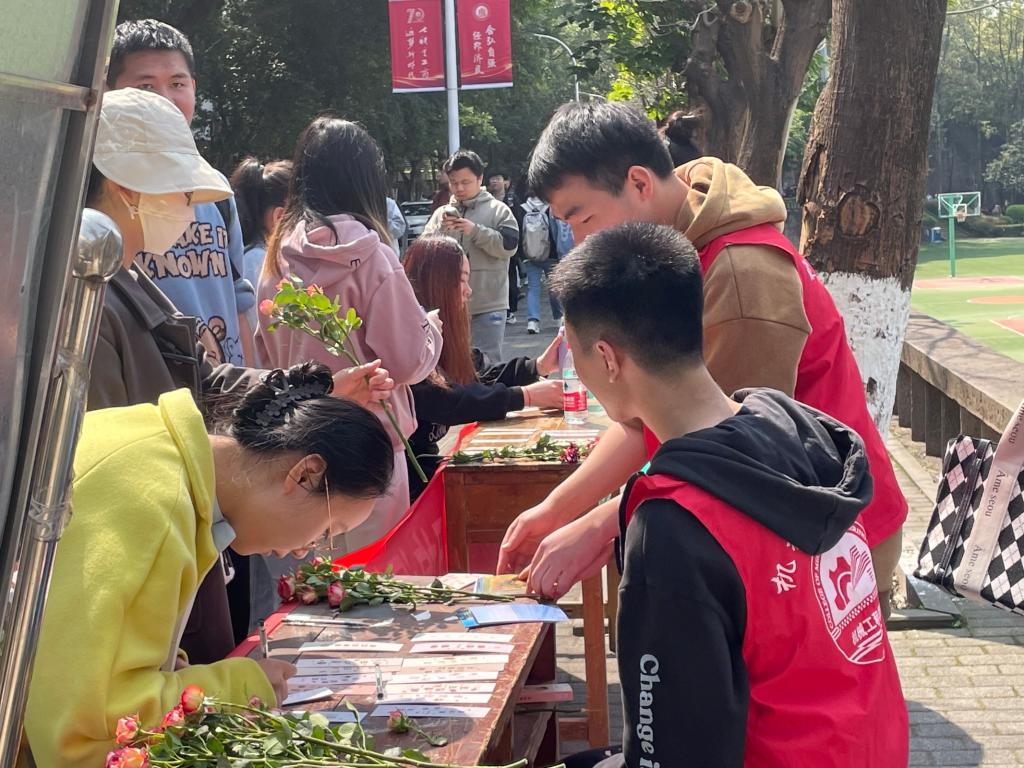 “赠人玫瑰,手留余香,每一份感动如花瓣,绚丽生命的春夏秋冬,与人和善,于己宽容,每一份善良如雨露,浸润着生命的美丽”,2023年3月14日,重庆工商大学yl23455永利集团“初阳”青年志愿者服务队在重庆工商大学南区开展了“玫瑰予你,拥抱温情”的祝福交换公益活动。