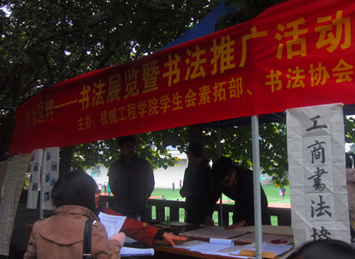 为进一步推进大学生素质拓展36182工程的建设,提升同学们的人文素养,yl23455永利集团学生会素拓部联合重庆工商大学书法协会举办了书法作品比赛活动。11月29日,评选出来的优秀作品在校园内进行了展示,并借此开展了“重拾国粹”书法推广活动,得到了广大同学的欢迎。