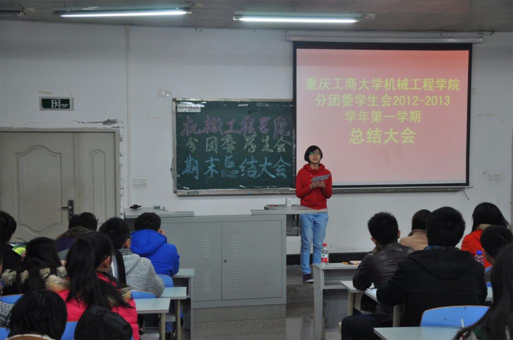 首先,分团委副书记张慧慧同学发言,她简短的总结了2012年的工作情况,讲述了“有困难找学生会”新理念的实施情况,对大家一年的工作表示了肯定。接下来,学生会办公室、宣传部、组织部、辩论队共计15个部门的负责人,逐一进行了PPT汇报,总结取得成绩的基础上,分别谈了存在的不足和对明年工作的展望。部长们精心制作的PPT,慷慨激昂的演讲迎得了全场的掌声。各部门有各部门的优势,也有存在的不足,相信这样一次交流总结是大家相互学习的好机会。最后,王微老师做了总结讲话。她肯定了学生会一年来全体干部干事辛勤的付出,各项活动顺利的举办,取得了不错的成绩。也对存在的不足提出了新的要求和希望,希望2013年学生会可以再接再厉,争取更大的进步!