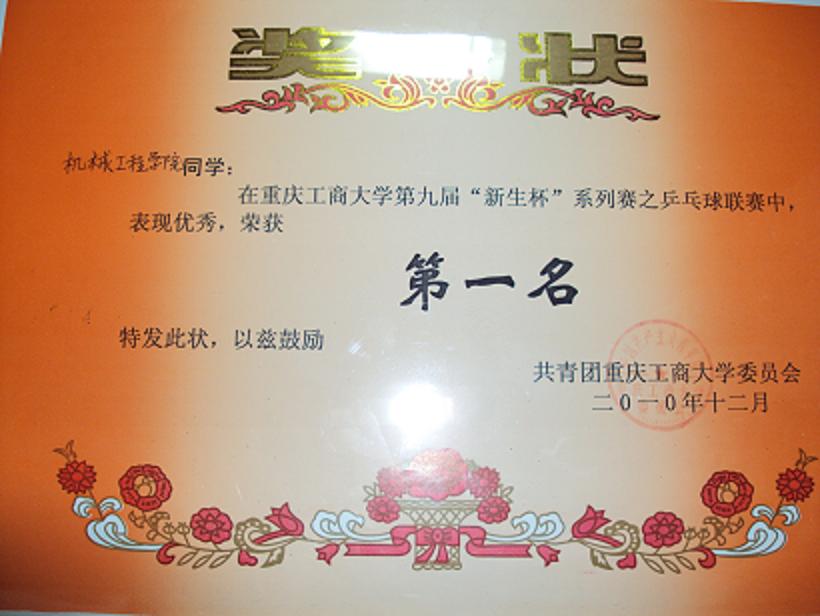 2010年12月3日,重庆工商大学第九届新生杯乒乓球决赛在主校区体艺馆进行。yl23455永利集团乒乓球队一路过关斩将,最终以3:1打败计信学院,取得了新生杯乒乓球决赛的冠军。