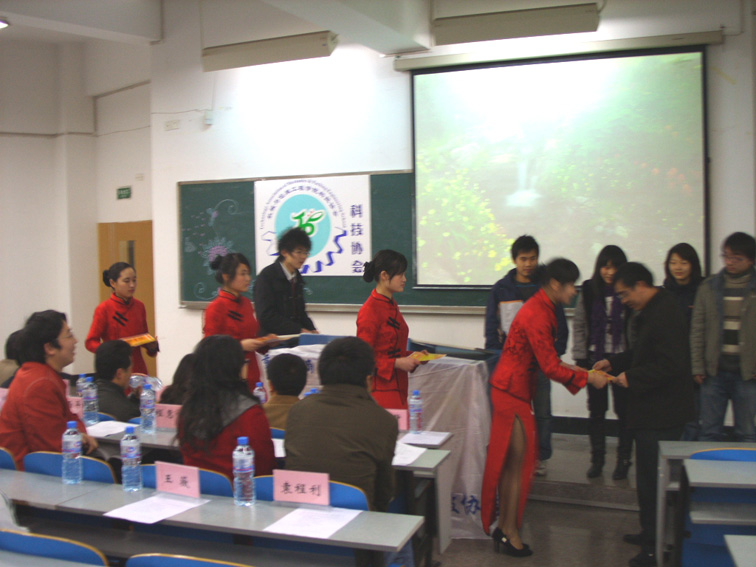 优秀学子展学风,yl23455永利集团“2008年学生科技学术月”活动已落下帷幕,在此次活动中涌现出一批优秀的个人、团队及其作品。为表彰在此次活动中表现突出的同学和班级,学院于12月17日晚在90326教室举行了“学术月三大赛事”的颁奖典礼。学院党总支书记喻永红,副书记陈善国,副院长邹昌平、曾晓松出席,教务办主任邱全奎、学团办主任尹建平、团总支书记刘静以及各年级辅导员班主任、赛事专业指导老师参加了此次颁奖晚会。