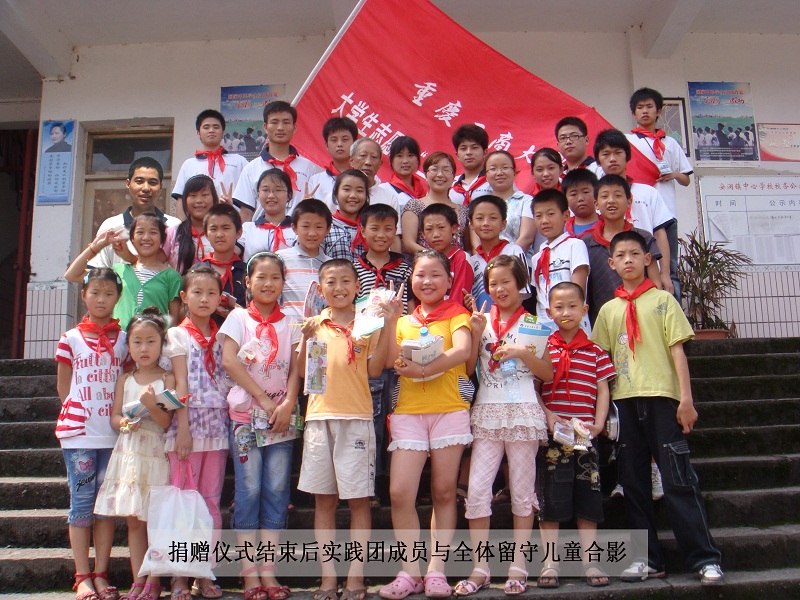 “情系安澜,爱心捐赠”关注留守儿童的爱心活动在一首《中国少年先锋队队歌》的唱响下拉开序幕,安澜中小学熊校长首先为本次活动致辞,他强调:“‘三下乡’社会实践活动意义重大,它不仅仅是很好的践行了大学生以‘服务为先’的为人理念,更是自己人格的一种陶冶和升华。”同时他还指出“大学生三下乡活动与目前政府大力倡导大学生村官这一国家政策相映成辉。”最后他还预祝本次活动取得圆满成功。安澜中小学校是一所集学前班、小学和中学为一体的综合性教学单位,其中中学11个班,小学12个班,截止目前,安澜镇留守儿童多达200多名,可以说是留守儿童占比例最大的一个聚集点。另外,学校虽然条件艰苦,但办学、教学优秀。今年中考,学校陈飞、周静等共37名学生上连招线,再创新高。