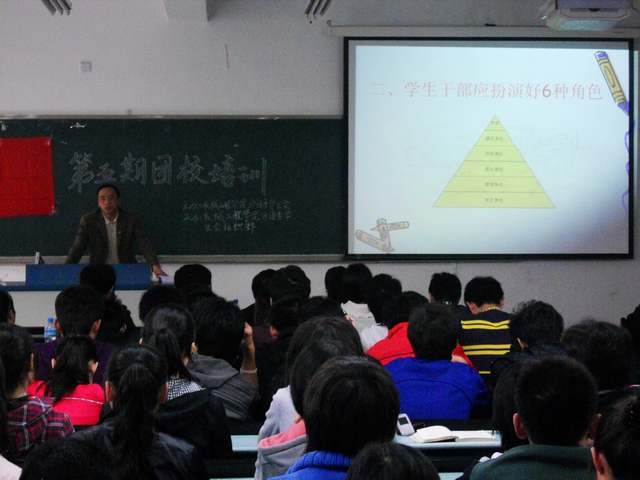 在严肃活泼的气氛下,刘洋副书记就如何提高团学干部的素质及能力培养等问题与在座同学进行了交流;尹建平老师围绕“学生干部工作方法与艺术”主题与同学们进行了交流。团总支书记刘静老师也将自己对新生如何适应大学生活和团学干部如何开展团学活动方面的宝贵经验与在场的全体师生分享。学生一支部书记王微老师向学生干部提出用青年马克思主义精神武装自己,培养大局意识,提高团学干部应对复杂问题的能力。