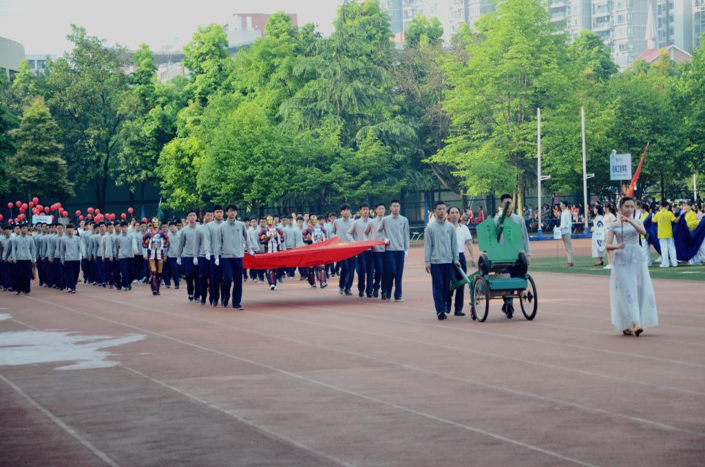 4月18日、19日,重庆工商大学在南区足球场举办第十四届田径运动会。校长孙芳城教授、党委副书记孟东方教授等出席了开幕式。