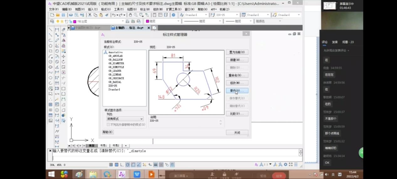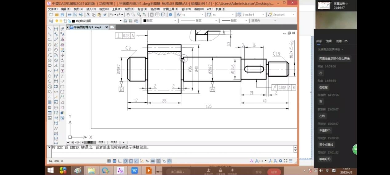 CAD软件是未来不可或缺的“合作伙伴”,它不仅能提高学生的绘图水平和专业技能,还可以进一步培养勤奋、严谨、求实、创新、的良好学习风气。在CAD制图强化专场培训中,谭琼老师结合实例介绍了绘图命令和编辑命令的使用技巧,尺寸标注、公差以及粗糙度。参训学生一边观看直播,一边用电脑进行软件命令操作。通过这种方式,尽管是线上教学,却也丝毫不影响学生学习和掌握中望CAD软件命令的操作。当遇到困难或者不理解的地方,同学们会通过弹幕发送疑问,然后谭琼老师给同学们一一解答。在疫情背景下,这种培训方式受到了参训学生们的一致好评。