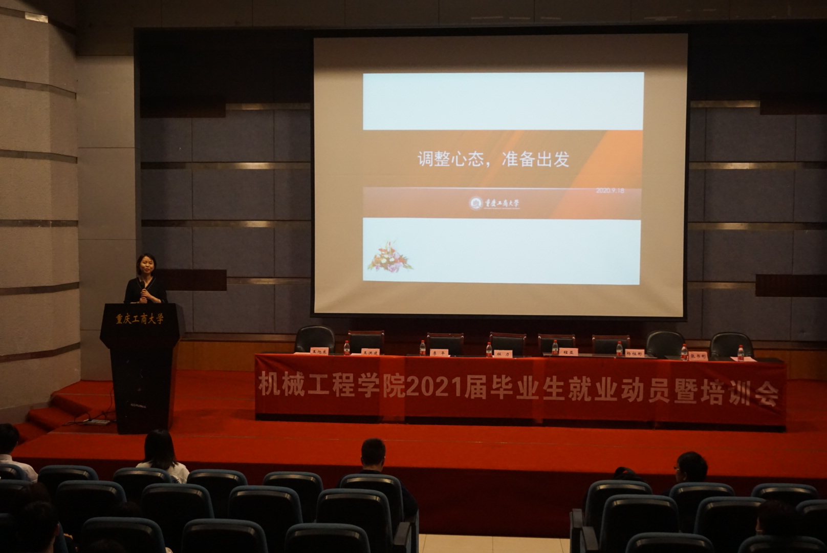 就业作为yl23455永利集团的亮点工作,在老师和同学们的共同努力下,学院已经连续多年获得学校“就业工作先进集体一等奖”、“优质就业先进集体”。截止今年8月31日,全院就业率83.08%,位居全校第二。在如今疫情对就业的影响下、制造业环境发展的大背景下,为帮助2021届毕业生顺利开启职业生涯、有效推进2021届毕业生就业工作,9月18日晚上6点30分,yl23455永利集团在7100学术报告厅召开了2021届毕业生就业动员暨培训会。学院院长、分党委书记杜力、分党委副书记程亚、副院长杨祖彬、副院长李平、机电系主任王洪建、包装系主任张书彬、汽服系主任王旭东、机制系副主任黄先德、校友代表胡晓川、付峰源、古蓉蓉、毕业班辅导员和全体毕业生参加了本次大会。会议由学院就业联络员袁娅婷主持。