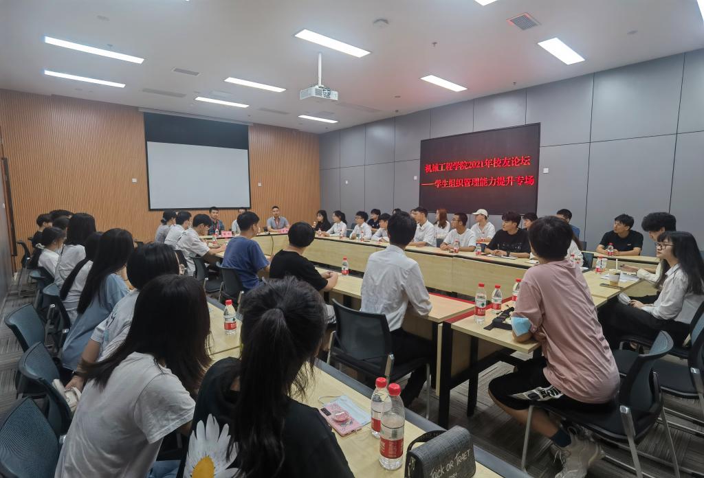 “学生组织管理能力提升专场”上,刘冰峰学长以“谈谈对干部的理解”为题展开分享,从自身经历讲述引出机械人精神——锲而不舍,坚韧不拔。他认为学生干部是锻炼自我,收获能力的一个好平台。谌利学长提出自我管理、业务管理、团队管理的“三管理”理念,他鼓励大家要有人生目标,同时在生活中要学会培养大局意识。曹瑞学长提出人生要不断的尝试并勇敢的去尝试,在尝试中找到自己的优势和价值。王剑宇学长作为学院“机械师”的创始人,他向同学们讲解了自己担任学生干部时的收获和自己的考研经历,他尤其强调“集体”的重要性,倡导大家在团队中学会发光发热。分享结束后,同学们就学生组织内部协调问题、考研相关问题及工作问题等问题进行了提问。