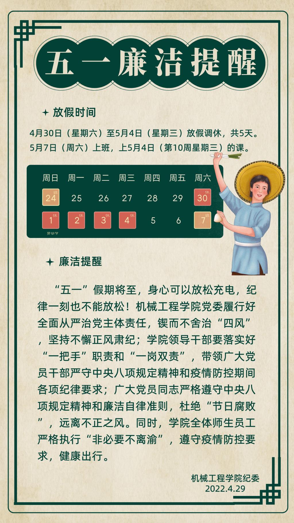 yl23455永利集团五一廉洁提醒