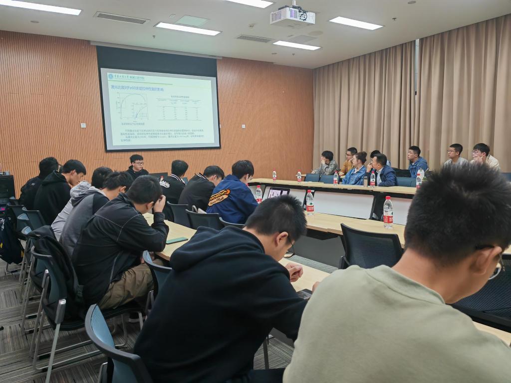 本次论坛上,8位2022级硕士研究生分别介绍了各自研究内容。彭云川首先介绍了激光熔覆技术的概念与优点,再对拉伸断口进行分析,研究了激光比能对激光熔覆Fe60涂层力学性能的影响。刘吉祥介绍了激光抛光技术的研究进展及其未来发展的趋势。徐永航针对激光熔覆粉末有效利用率进行预测模型的构建,通过对三种粉末熔覆后的粉末利用率进行计算,平均利用率误差均小于3%。彭康威讲解了激光抛光模具钢的多目标预测回归模型及工艺参数优化,并指出了激光抛光的优势及未来发展方向。邱国航的研究是基于子窗口方差滤波器分解的红外与可见光图像融合,子窗口方差滤波器提高了图像的视觉质量和图像的信息内容,实验结果与7种最先进的融合方法相比,该方法在定性和定量上表现更好。陈勇全对面齿轮蜗杆砂轮成形修整工艺误差进行了分析,阐明了面齿轮磨削加工蜗杆砂轮的成形修整原理及对未来的展望。毛恺奕针对激光熔覆涂层形貌及质量检测,介绍了回归预测模型,并使用灰狼算法优化随机森林的超参数,提高了随机森林预测模型的准确性。彭生帝对高速干切滚齿机床多传感器的热特性进行研究,介绍了高速切削的概念,展示了相关数据波形图,最后就此对未来的展望是绿色和健康。