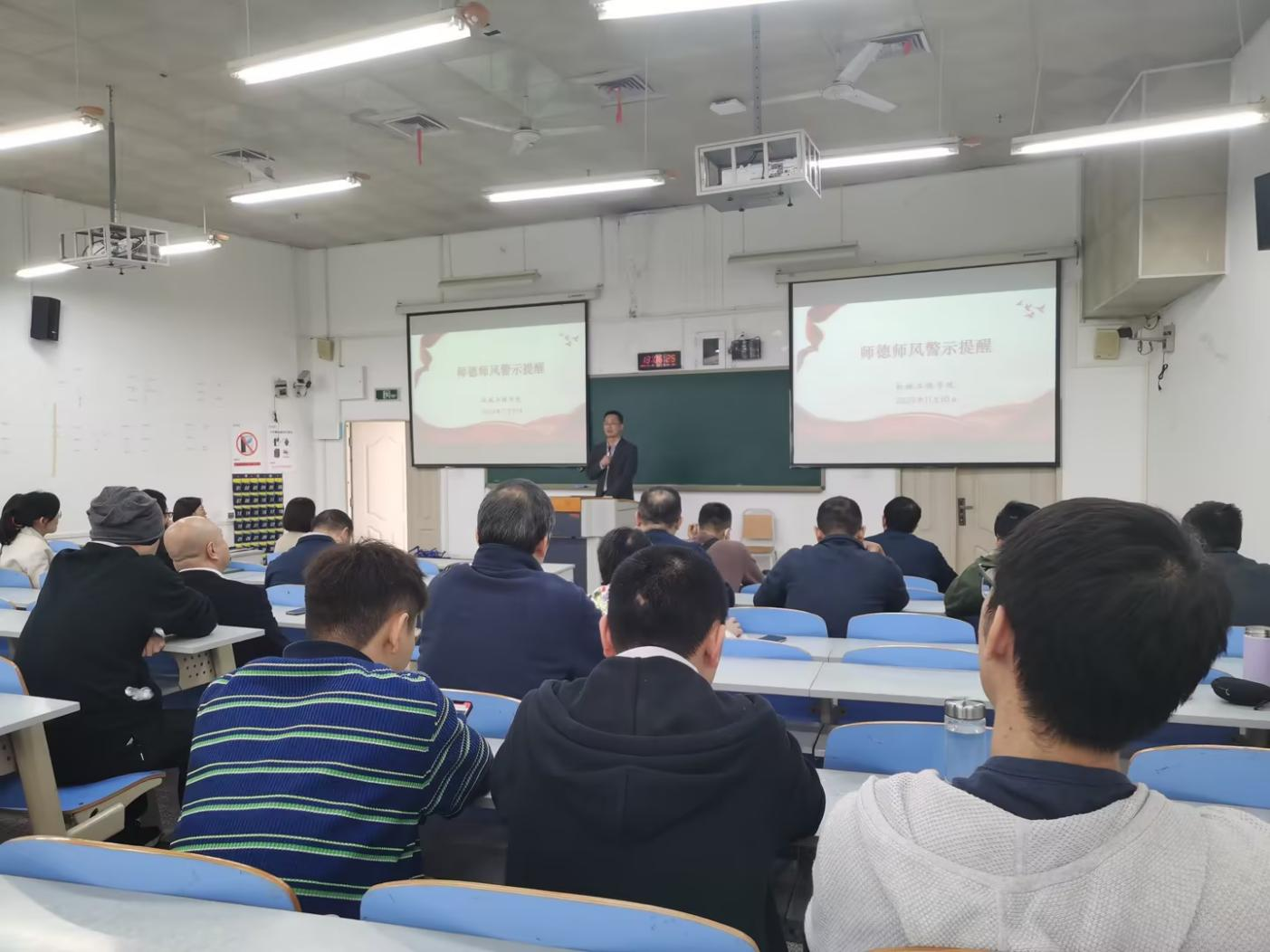 11月10日下午,yl23455永利集团在慧智楼90308教室召开师德师风警示教育教职工大会。学院全体教职工参加了警示教育活动。学院党委书记杨娟主持了大会。