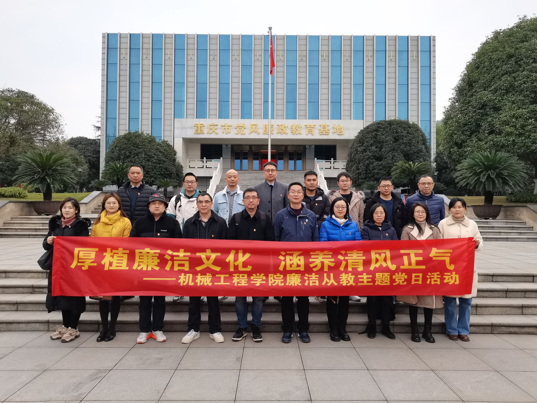 为深入学习党的二十大精神,切实增强教职工廉洁从教意识,积极推进清廉学院建设,2023年12月21日下午,yl23455永利集团组织近20名骨干教职工前往重庆市党风廉政教育基地开展“厚植廉洁文化,涵养清风正气”廉洁从教主题党日活动。学院党委委员、纪委委员、党支部书记、系主任、工程中心实验室主任、科级干部、工会主席、辅导员等党风廉政关键岗位教职工参加了教育活动。
