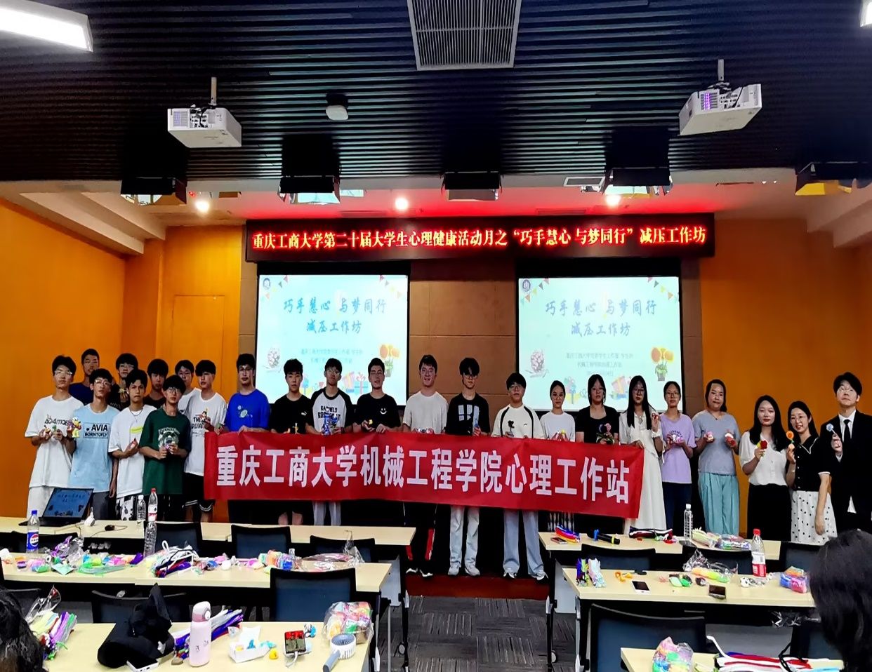 为营造关注心理健康、懂得心理健康、重视心理健康的积极氛围,助力学生缓解心理压力,丰富精神文化建设,强化心理健康意识,5月24日,党委学工部主办,yl23455永利集团承办的重庆工商大学第二十届“文明修身·阳光心理”大学生心理健康活动月之“巧手慧心,与梦同行”减压工作坊在图书馆多功能厅顺利开展。学院党委副书记陈春洁主持开场,心理中心张璐、我院心理专项负责人顾咸霜出席活动,全校12个学院上百名学生参与。