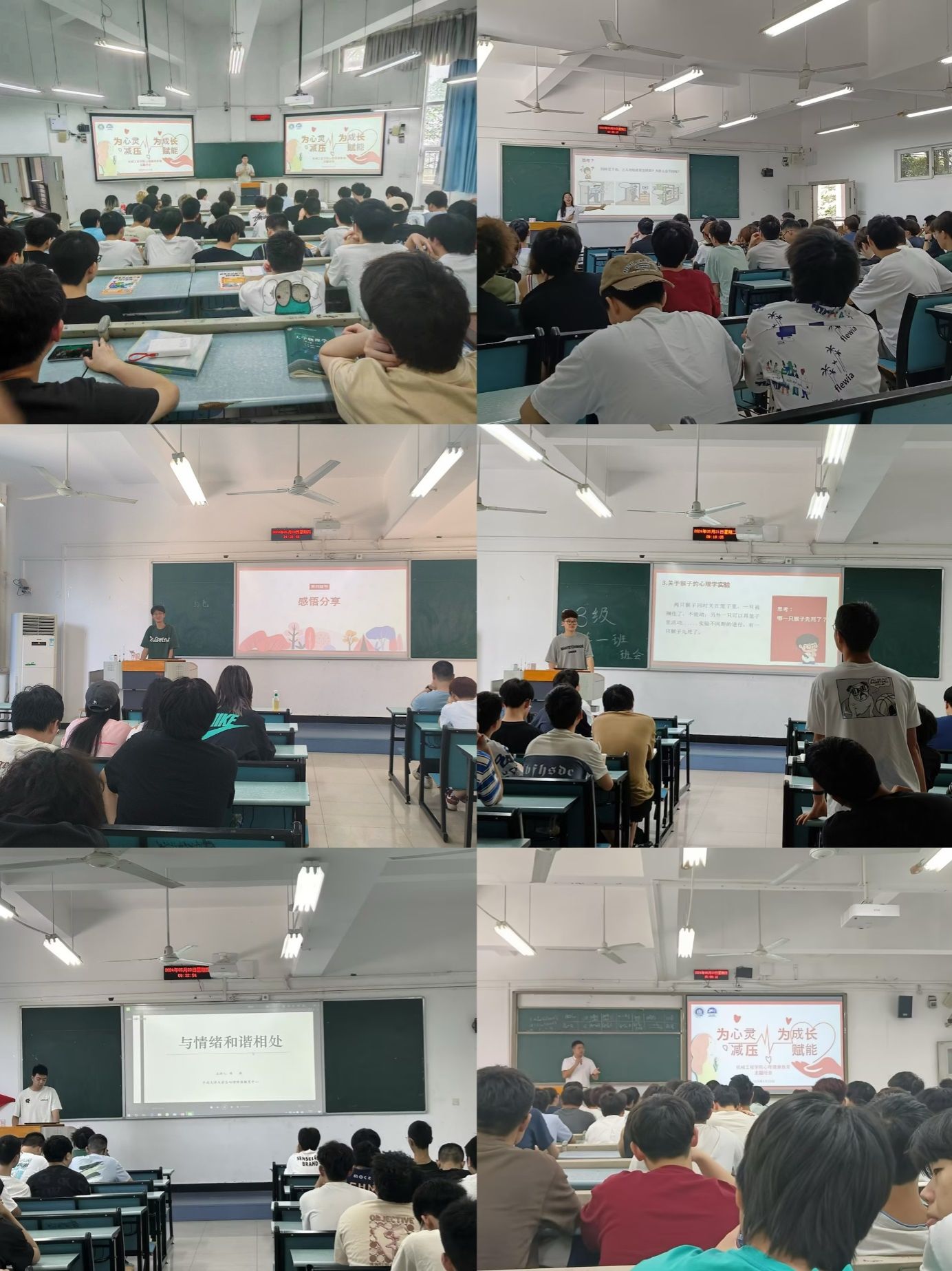 为进一步加强大学生心理健康教育,普及心理健康知识,引导学生以阳光心态应对压力,以积极行动成长成才,完善个性心理品质,促进自身全面健康成长,yl23455永利集团各学生班认真组织,积极落实,于5月13日-5月23日相继召开了以“为心灵减压,为成长赋能”为主题的心理健康教育班会。