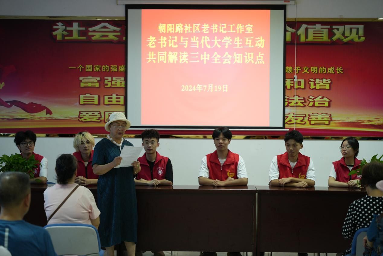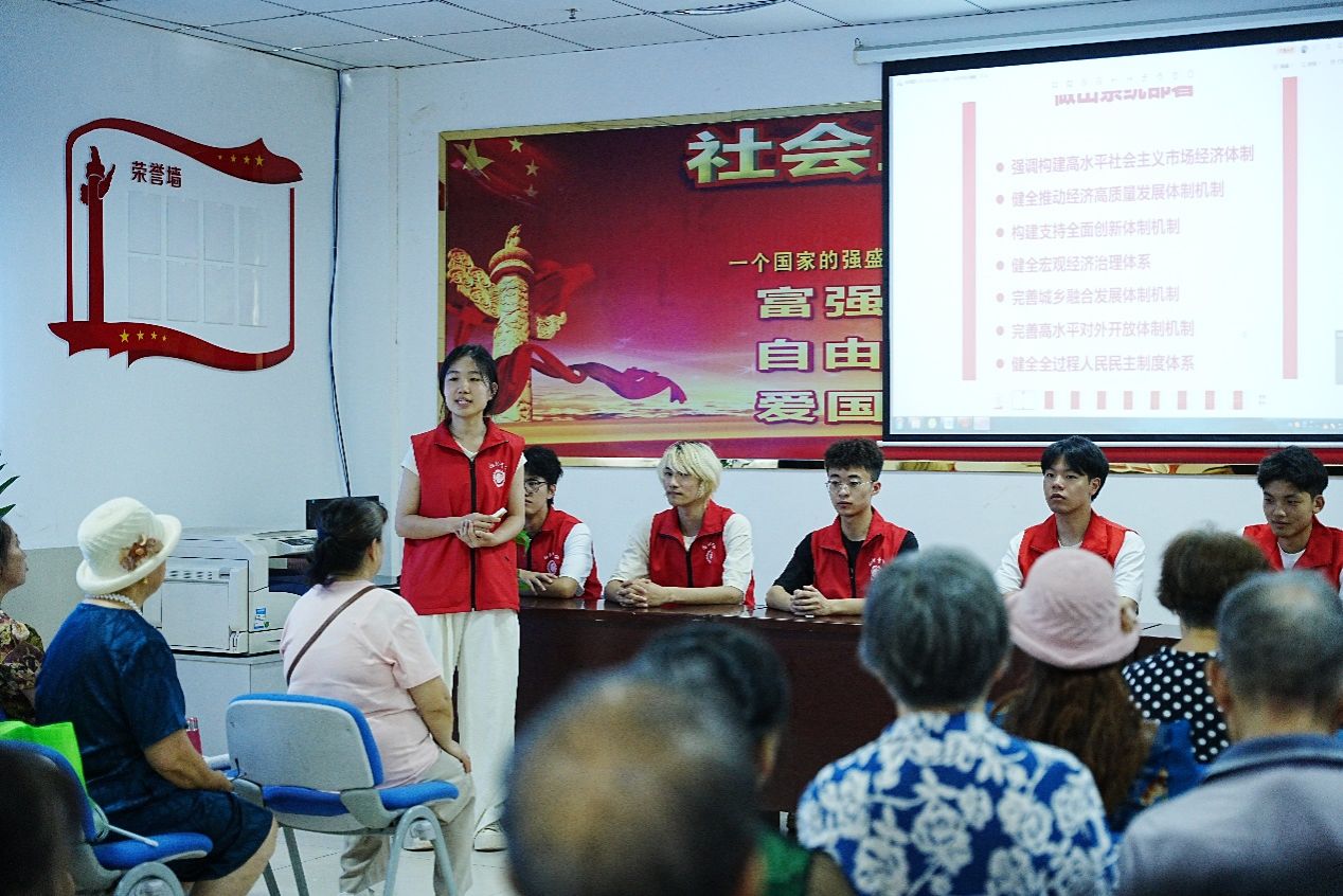 活动伊始,社区负责人以温暖的问候开场,向在座的老党员们一一介绍了服务团的成员们,并向他们致以热情的欢迎。紧接着,老党员代表就本次会做开场致辞,由服务团队长向老党员们进行了二十届三中全会的内容讲解。老党员们始终表现得全神贯注,足以见得内容之精彩。讲话结束后,由三位成员就科技对生活的影响、党员身份的意义等方面,对老党员们进行采访。面对这些问题,老党员们结合个人经历与时代背景,真切的回答服务团成员们,分享着科技如何悄然改变着他们的生活,以及作为党员所承载的使命与荣耀。他们的每一句话语,都饱含着对党的深情厚谊,对国家的无限热爱,以及对年轻一代的殷切期望。